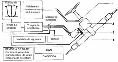 1-Sensor de cuplu 2-Mecanismul de directie 3-Motor electric EC 4-Sensorul motorului
