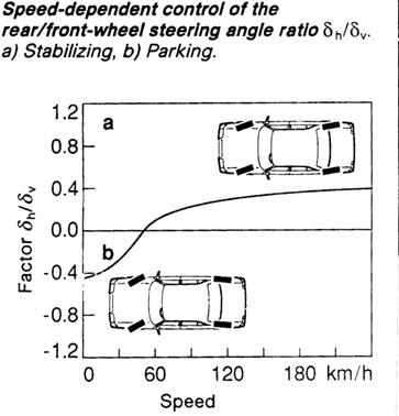 Fig.6 Variatia raportului unghi de bracare spate/fata la viteze mari si la parcare