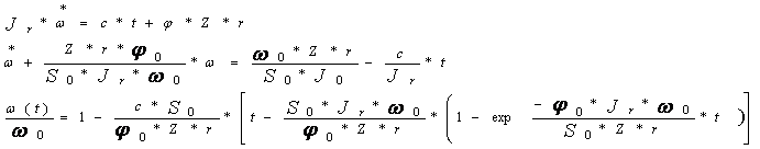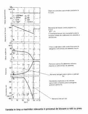 1 si adoptand pentru momentul de franare o functie de forma : Mf = c*t (5) se pot forma ecuatiile de miscare ale rotii in curs de blocare. Pentru domeniul stabil rezulta: Din ultima relatie,in conditiile neglijarii exponentialei ,a carei influenta nu este semnificativa,se poate deduce variatia deceleratiei rotii si timpul to ,care trece pana la atingerea patinarii S0 respectiv a coeficientului de aderenta maxim o.