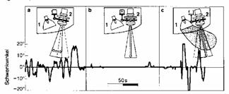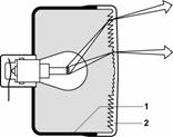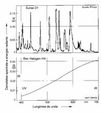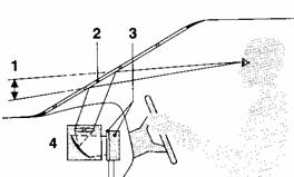 deceleratia peste 6 m/s -Iluminarea mediului inconjurator-trebuie luata in considerare adaptarea lumina /intuneric a ochiului in desfasurarea continua. -Conditiile meteo – ploaie,ninsoare si ceata necesita in dependenta de marimile fototechnice o adaptare a intensitatii semnalului. -Murdarirea semnalizatoarelor-impiedica vizibilitatea semnalizatorului si poate fi compensat pe langa curatire cu o crestere a luminozitatii. O solutie disponibila sunt in acest caz sistemele LED care si-au demonstrat avantajele la semnalizatorul III de franare introdus din 1997. SISTEME DE VIZUALIZARE NOCTURNA Fig.21 Extinderea domeniului de vizibilitate prin camera infra-rosu Fig.22 Modul de utilizare a campului vizual al conducatorului auto prin sistemul HUD 1-imaginea virtuala;2-Parbriz;3-Unitate LCD (VFD); 4-Unitate optica. Sistemul se compune din trei parti principale: -Farul infrarosu -Camera de receptie; -Display. Sursa radianta poate fi o lampa cu halogeni si filtru,IR-LED sau IR-Laser. In cazul lampii cu halogeni apare o problema in sensul ca pe partea frontala apare lumina rosie ceeace este interzis.Avansate sunt variantele cu IR-LED si IR-Laser ca surse de radiatii. Camera de receptie are o