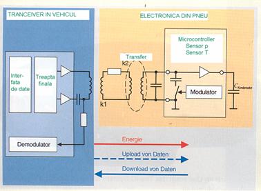 utilitatea imaginii obtinute.In functie de sensorul de imagine CM Display-ul cel mai atractiv il reprezinta sistemul HUD experimentat si cu alte ocazii.In figura 23 se prezinta un aspect final al sistemului ADILIS (Advanced Infrared Lighting System). Fig.23 Imagine suplimentara realizata cu HUD Sisteme de asistenta la autovehicule comerciale si autotrenuri Fig.24 Sistem global de informare preconizat pentru autocamioane si autotrenuri. In anul 2000 la targul international de la Hanovra firma Delphi a prezentat un prototip cu un program cuprinzator de electronica,sensorica sitelematica care sa asiste conducatorul auto in observarea si aprecierea situatie traficului. Conceptul “Safety Truck” se compune din : -4 sisteme de camere ; -diferite sensori radar ; -un sistem infrarosu ,care sa acopere toate domeniile din jurul autovehiculului relevante pentru siguranta. In zona cabinei doua sisteme radar asigura detectarea autovehiculelor din zona apropiata (25 m 24 GHz) si departata (150 m,76 GHz).O camera care asigura extinderea vizibilitatii de noapte si pastrarea benzii de circulatie (Lane Guard Sistem)Sistem radar de infrarosu pentru supravegherea “unghiului mort”,iar in spate un sensor de distanta mica si o camera de vederi pentru asigurarea spatelui. Sistemul de supraveghere a presiunii din pneuri Realizarea unui parcurs indelungat cu presiune prea mica in pneuri sau chiar cu o pana de anvelopa are drept consecinta distrugerea prematura dar poate sa duca si la incendierea autovehiculului datorita lucrului de deformare sporit si frecarilor mari dintre pneu si janta. Fig.1 Sisteme de supraveghere a presiunii din pneuri 1-Monitorizarea razei de rulare a pneului; 2-Utilizarea unui sensor de supraveghere integrat in valva; 3-Utilizarea sensorilor integrate in pneu. In prezent se utilizeaza trei sisteme de supraveghere a presiunii din pneuri.Monitorizarea razei de rulare este cea mai simpla dar include si erorile cele mai mari (pana la 25%).La solutia doua se masoara presiunea si temperatura direct si se transmit datele printr-un circuit electromagnetic la un circuit de emisie- receptie aflat pe aripa interioara a sasiului.Sensorii si antena petic (patch) sunt integrati in valva jantei (fig.1-2).Sistemul IQ-Tyre al firmei Goodyear si Siemens VDO este incorporat in pneu si masoara presiunea si temperatura.Antena este circulara si emite semnale pe toata durata rotatiei rotii (fig.1-3). Fig. 2 Componentele principale ale sistemului IQ-Tyre In afara de datele masurate sistemul transmite si memoreaza datele de identificare ale pneului ( pneu vara/iarna,Indicele de viteza,codul DOT specificatii de siguranta dupa normele Federal Motor Vehicle Safety Standard (FMVSS 109 pneuri pentru autoturisme si FMVSS 119 pneuri pentru autocamioane ). Diferitele module ale sistemului IQ-Tyre rezulta din fig.3. Avantajul fata de constructia anterioara consta in faptul ca modulul din pneu nu necesita o sursa de energie proprie si ca urmare durata de functionare nu depinde de longevitatea bateriei.Legatura dintre modulul pneului si modulele sasiulului se face prin telemetrie transponder,similar ca in cazul asigurarii automobilului prin telecomanda.Pe fiecare aripa interioara este montat un transceiver care radiaza un camp electric de mica raza de actiune. Cu acest semnal de 125 kHz se transmit simultan comenzi ,date si energie pentru modulul pneului.Ca receptioner serveste o bucla din sarma integrata in zona laterala a pneului.Antena de 360 grade are in orice moment o distanta optima in raport cu transeiverul. Fig.3 Interactiunea dintre modulele sistemului Montajul electronic este foarte mic sensorii 2g si antena 20g.Electronica din pneu transmite datele de presiune si temperatura si codul de identificare in sens invers la transeiver.Printr-un sistem LIN –Bus (Local Interface Network) semnalele ajung de la Microcontroller (fig.4) la modulul de comanda al sistemului.. Document InfoAccesari: 31456 Apreciat: Comenteaza documentul:Nu esti inregistratTrebuie sa fii utilizator inregistrat pentru a putea comenta Creaza cont nou A fost util?Daca documentul a fost util si crezi ca meritasa adaugi un link catre el la tine in site in pagina web a site-ului tau.