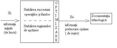 Pentru optimizare reala a proceselor tehnologice trebuie sa porneasca de la elaborarea pe baze stiintifice a unui sistem de proiectare -optimizare, care pornind de la informatiile de intrare (cunoscute), trecānd prin stabilirea succesiunii operatiilor si fazelor si a regimurilor de aschiere, dau marimi prelucrate (noi) care constituie informatiile necesare documentatiei tehnologice.