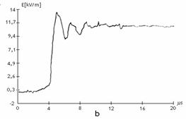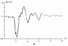 Figura 3 a si b prezinta campul tranzitoriu electric si magnetic produs de comutatia in aer a separatoarelor sub sarcina cu urmatoarele valorile tipice ale campului tranzitoriu electric si magnetic