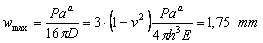 Ţinānd seama numai de sarcina uniform distribuita, placa superoara se afla īn cazul din figura 2. Conform tabelului anterior, gasim prin interpolare: C1 = 0,225 si C2 = 2,7. Sageata datorita presiunii p este: