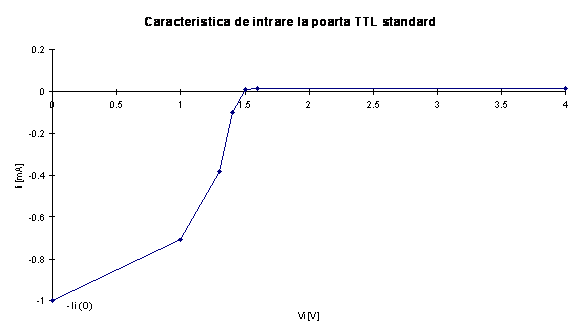 La ridicarea caracteristicii de intrare pentru TTL standard se pune īn evidenta dispersia parametrului II(0), pentru care vom considera o valoare medie : II(0) = 0.9 mA .