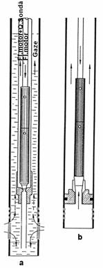 De remarcat ca schemele prezentate in figurile 6.3.a si 6.6.b permit separarea gazelor din fluidul produs de sonda si aspirat de catre pompa. Schemele 6.3.b si 6.6.a implica aspirarea gazelor de catre pompa.