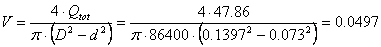 viteza fluidului in spatiul inelar: