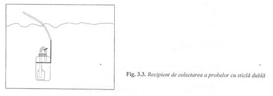 2. În cazul recoltarii apei din bazine, rezervoare si fântâni, flaconul de sticla pregatit ca mai sus este montat într-un support metallic care-I confera o anumita greutate. Flaconul astfel montat se sterilizeaza împachetat în hârtie.
