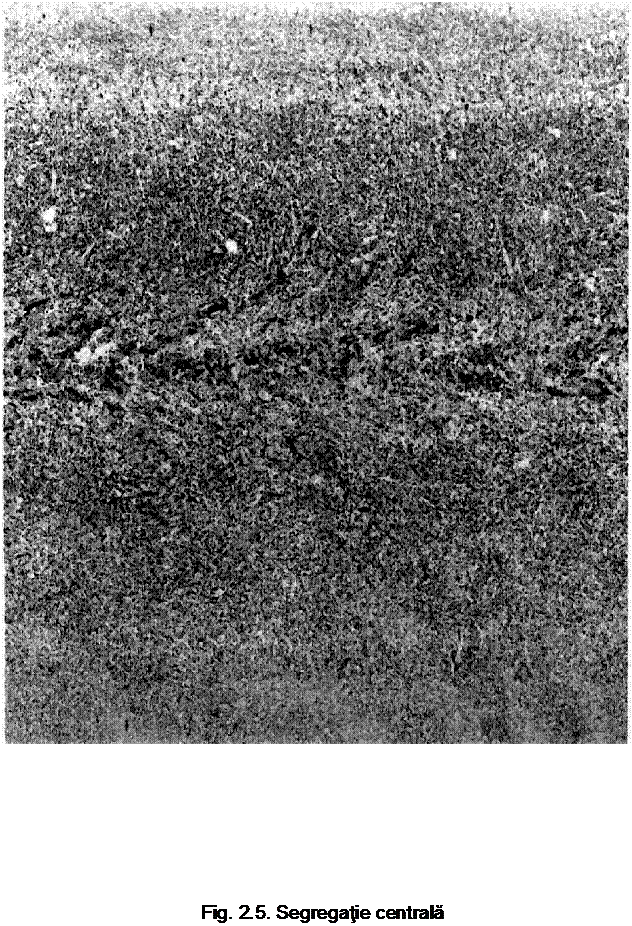 Aceste segregatii macro (fig. 5) in zona miezului apar pe amprenta de sulf si se produc din urmatoarele cauze :