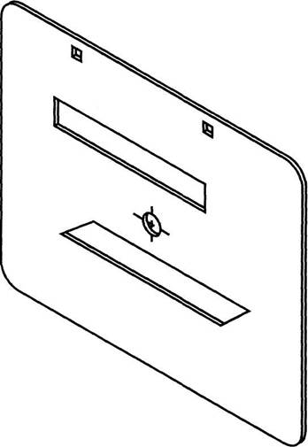 7) Aplicand a doua varianta, din meniul derulant "Modify", se selecteaza linia "Solids Editing", optiunea "Subtract". La solicitarea "Select solids and regions to subtract from...", se selecteaza exterioara, apoi se închide selectia; s-a indicat obiectul cu rol de descazut, la solicitarea "Select solids and regions to subtract...",se selecteaza orificiul circular, cele doua orificii dreptunghiulare mici , orificiul dreptunghiular mare si cel în forma de paralelogram, apoi se închieie selectia; se precizeaza obiectele cu rol de scazator. AutoCAD a generat o regiune de forma complexa, corespunzatoare suprafetei frontale finale a cadranului.
