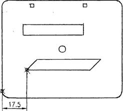 Se cotraza prin DIMLINEAR pozitia pe orizontala a centrului oficiului în raport cu muchia din stânga. Se selecteaza capatul de sus al axei orizontale a orificiului, ca punct de cotare si nu centrul propriu-zis, pentru a nu suprapune linia de extensie peste axa! Se plaseaza cota chiar peste proiectie(vezi figura urmatoare), deoarece este dificila o dispunere în afara conturului exterior. Se coteaza similar,pozitia pe verticala a centrului orificiului, masurând distanta de la capatul din stânga al axei orizontale a orificiului pâna la muchia inferioara a cadranului. Figura X