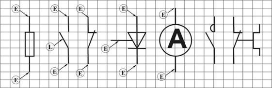 Unui simbol (fig. 1.1) i se ataseaza anumite puncte de referinta (puncte nodale - de conexiune). Nodurile cele mai importante sunt nodurile electrice (E) destinate conectarii la o retea electrica si nodurile de legatura (L) care arata legaturile (de natura mecanica - M -, hidraulica - H -, optica - O -, pneumatica - P -).