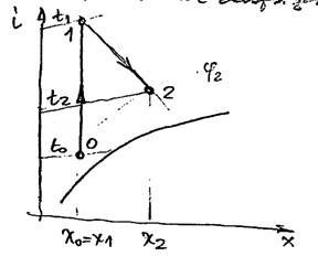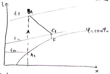 i <i , adica entalpia aerului la iesire este mai mica decat la intrarea in procesul real, adica tD=t <tC si xD<xC