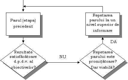 daca resursele permit repetarea etapei (sau a mai multor etape precedente, daca este cazul), iar previziunile sunt īncurajatoare (se asteapta rezultate pozitive), pasul poate fi repetat la un nivel superior de informare;