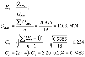 sirul valorilor debitelor maxime anuale intre anii 1975