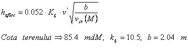 din masuratori directe efectuate in perioadele de ape normale si ape mari s-au determinat coeficientii de rugozitate: - in albia minora nm = 0.020