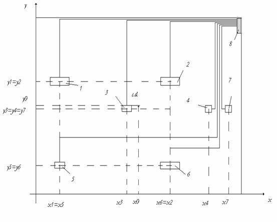 ritoriul consumatorului.Coordonatele centrului de sarcina al consumato- rului se determina dupa legea momentelor statice,cunoscuta din mecanica ,unde fortele se inlocuiesc cu sarcinile electrice.