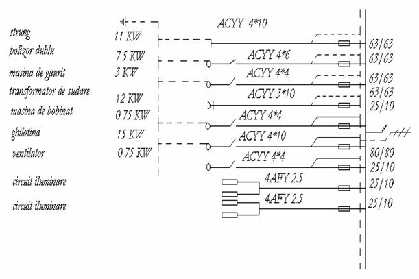 SCHEMA ELECTRICA MONOFILARA A INSTALATIEI ELECTRICE A ATELIERULUI MECANIC. |