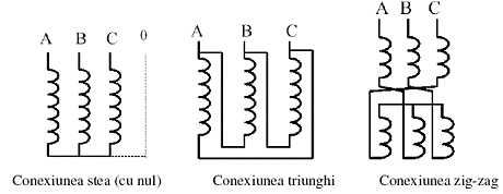 - conexiune: stea, triunghi, zig-zag, (fig 4 )