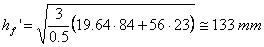 hb = hf - 2( dof dfc ) = 134.72 mm