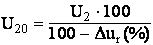 Pentru determinarea lui U20 se procedeaza astfel: se considera situatia b=1 si cosj = 0.85 inductiv rezulta deci U2 = U2n =100 V, aplicand relatia (1) se calculeaza Dur (%) iar din relatia (4) rezulta: