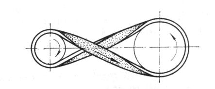Se obisnuieste a se denumi transmisia la care axele sunt incrucisate, iar cureaua este semiincrucisata transmisie semiincrucisata; asemenea transmisii nu necesita role de ghidare.