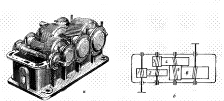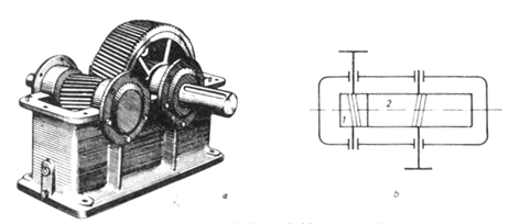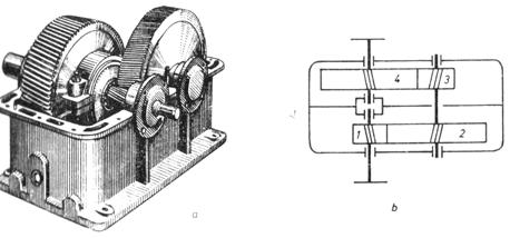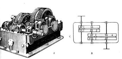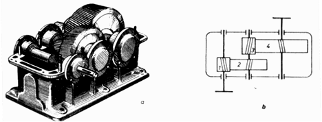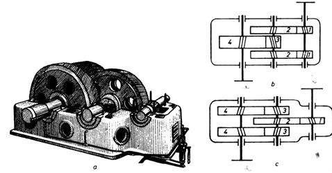 c) reductor de turatie cu doua treapte de reducere.