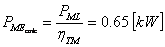 Puterea la arborele masinii de lucru PML=0.6 kW