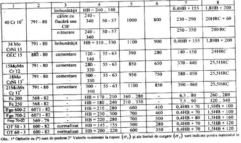 Tensiuni admisibile pentru predimensionarea arborilor