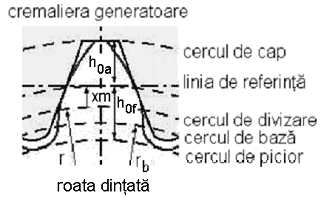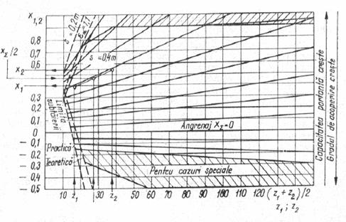 - x - distanta dintre doua roti vecine pe acelasi arbore, sau dintre roata si carcasa, astfel: x=10 ÷ 15 mm.