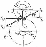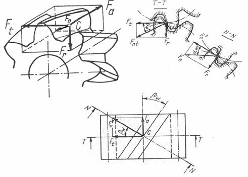Fig.2.Fortele din angrenajul cilindric cu dantura inclinata