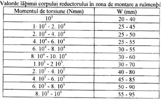 - w - valoarea latimii corpului reductorului in zona de montare a rulmentilor, astfel: