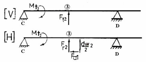 In capitolul precedent s-au calculat fortele ce apar in angrenaj cilindric cu dantura inclinata(Fig.2), fortele tangentiale, radiale precum si cele axiale, dar si fortele date de transmisia prin curele, luandu-se in considerare ca reductorul este dispus in plan orizontal, arborii, se incarca astfel.