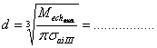 Diametrul arborelui la mijloc, unde se monteaza roata dintata se determina din conditia ca arborele sa reziste la incovoiere si se calculeaza cu relatia: