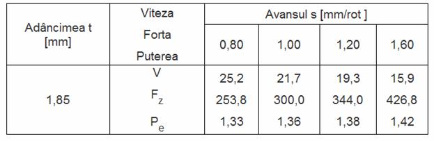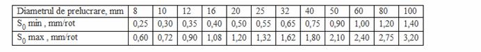 Avansurile pentru strunjirea de finisare se adopta conform tabelului :
