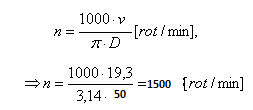 V = 19 [ m/min ]; Fz = 344,0 [daN]; P = 1,38 [kW].