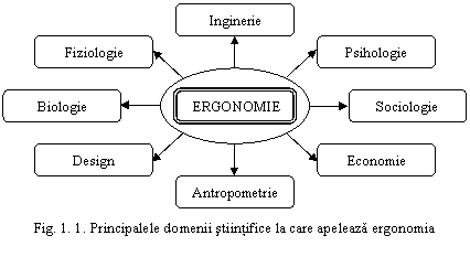 In figura 1.1 sunt prezentate sintetic principalele discipline/stiinte la care apeleaza ergonomia care ii confera caracterul de multidisciplinaritate/interdisciplinaritate.