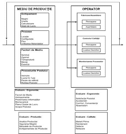 Fig. 1. 4. Un sistem mediu de productie/operator. Sunt trei criterii pentru evaluare: ergonomia, productia si calitatea