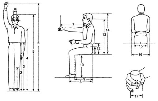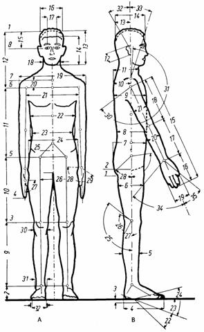 Fig.2.1. Numerotarea diferitelor dimensiuni ale corpului omenesc - pozitia