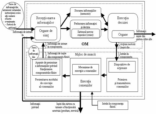 Prin sistemul om - mijloace de munca se intelege ansamblul format din componenta umana (omul) si componenta fizica. Aceste doua elemente sunt in interactiune si urmaresc un scop comun si anume realizarea unei operatii de munca. Caracteristicile principale ale oricarui sistem sunt intrarile si iesirile, care in cadrul sistemului specific analizat imbraca forme particulare .