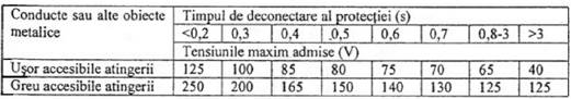 1.1.1. Valori maxime admise ale marimilor in instalatiile de protectie impotriva electrocutarii