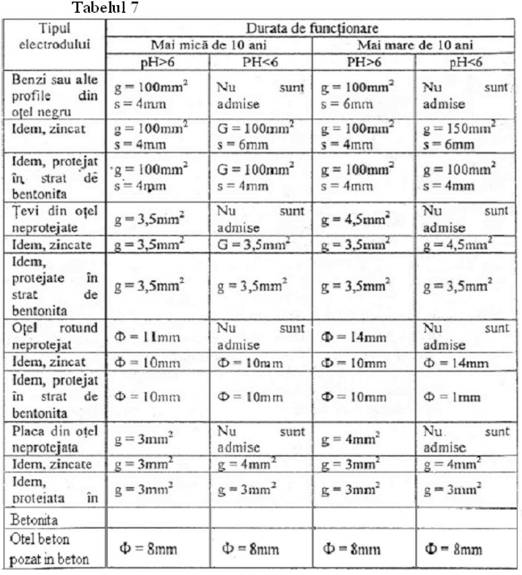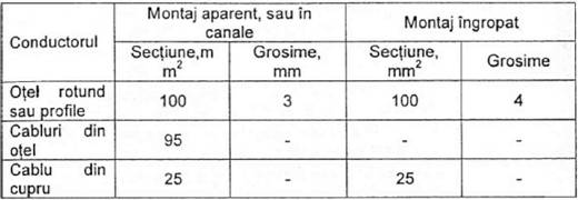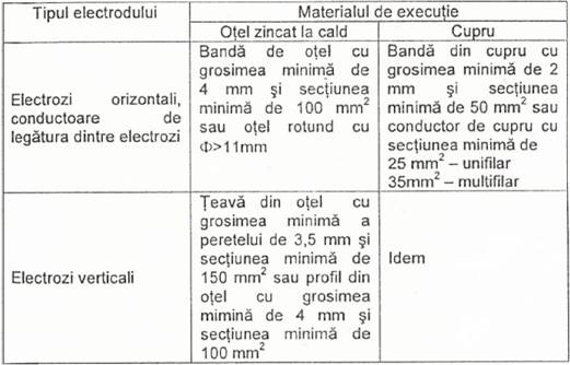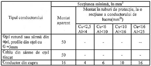 Conductoarele principale de nul vor fi din cupru sau otel cu sectiunile mai mari decat cele din tabelulll.
