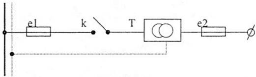 transformatoarele sa fie prevazute cu intreruptor si cu sigurante de protectie pe circuitul primar, (el), cat si pe circuitul secundar, (e2)