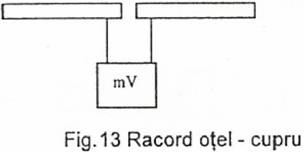 Conform figurii 13 la imbinarea celor doua piese de natura diferita apare o diferenta de potential, deci ele se comporta ca o pila electrica unde cele doua conducte sunt electrozii iar solul este electrolitul. Daca in locul milivoltmetrului se introduce un miliampermetru se constata ca intre cele doua conducte exista o circulate de curent. Placa din care iese curentul, numita anod, se corodeaza iar cealata numita catod ramane neschimbata. Experimental se poate demonstra ca unele metale se corodeaza mai mult iar altele mai putin. Ordinea de coroziune a unor metale este: Cu, Pb, Fonta,Fe, Zn, AI, Mg.