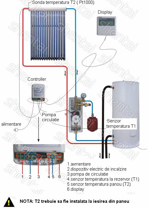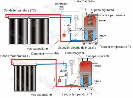 Panoul solar trebuie sa fie instalat cat mai aproape de rezervor pentru a evita circuitele lungi ale tevilor. Rezervorul trebuie sa fie de asemenea pozitionat cat mai aproape de circuitul de alimentare.