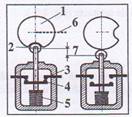 4 - contacte mobile ; 5- resort ; 6 - organ suflaj ; 3- puntea contactelor mobile ; 4- diferite stadii pe