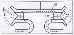 1-cama ; 2 - rola ; 3 - contacte fixe ; prin suflaj magnetic : 1- contacte de lucru : 2- coloane de