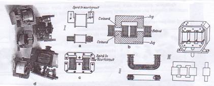 III- electromagnet trifazat ; d-diferite forme de electromagneti de curent alternativ