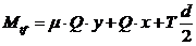 rezultat din integrarea presiunilor elementare dintre arbore si butuc. Daca se admite µ = 0,15 si se inlocuieste Q din relatia (3) si T≈ µ· Q, se obtine :