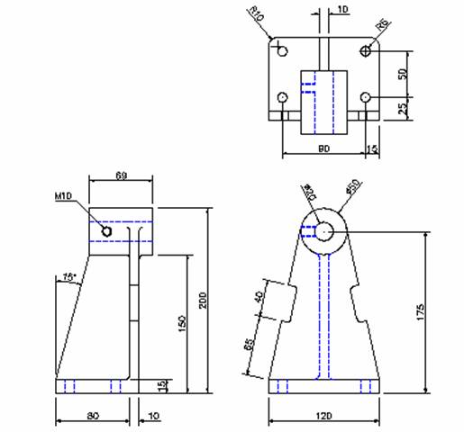 Dezactiva\i modul snap (off) si la cererea "from point" selecta\i un punct de pe cercul exterior in pozi\ia corespunzatoare orei 10 de pe cadranul unui ceas folosind op\iunea nearest a modului osnap. Tasta\i coordonatele punctului de sf]r=it al liniei leader 130,290 dup[ care ap[sa\i tasta "Enter" pentru a completa detaliile liniei leader. La cererea textului introduceti "M10" pentru a specifica gaura filetat[ din figura 14, dupa care selecta\i butonul "OK".